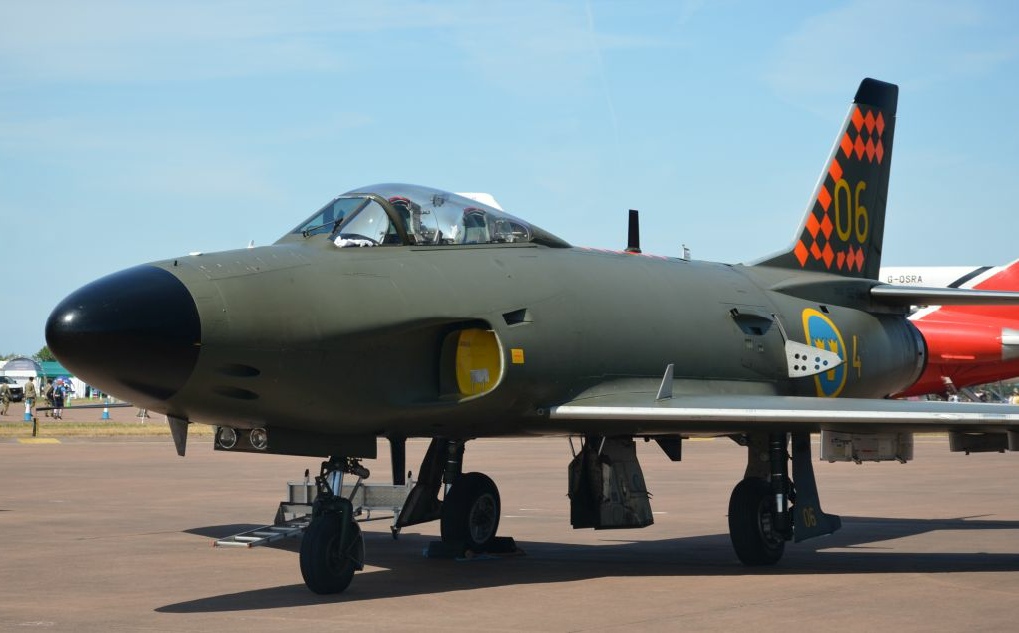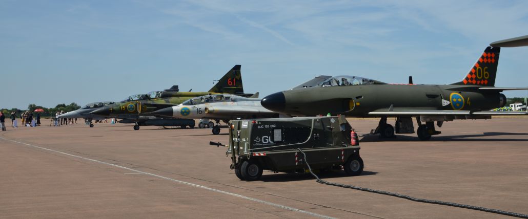Below: The Swedish Air Force (Flygvapnet) maintain a historic flight of iconic jet aircraft, including the Viggen, Draken and Lansen. These photos show them at the 2022 RAF Fairford Royal International Air Tattoo (RIAT).