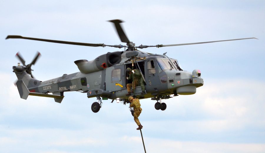 RN Wildcat HMA.2s entered operational service in 2015 onboard Type 23 Frigates and Type 45 Destroyers. Wildcats are normally also carried by the RN’s QE Class aircraft carriers as a defence against small attack craft and for general utility use. The HMA.2 variant is operated by 815 Sqn and 825 Sqn, whilst 847 Sqn also operates the AH.1 land attack variant for the Royal Marines.