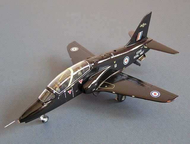 This is an Airfix Hawk I built back in the 1980s, now repainted as a RN aircraft, using Model Art's excellent decals. Always an elegant and balanced looking aircraft, the current gloss black scheme suits it well.