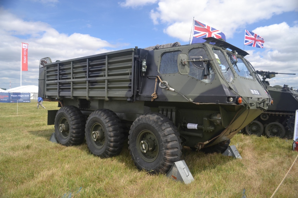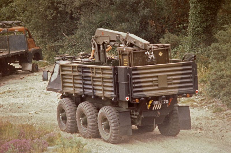 Entering British Army service in the mid 1960s, the Stalwart, or "Stolly" used much the same running gear as the rest of the FV600 series, although its Rolls Royce engine was moved to a low central position underneath the load carrying deck and connected to a pair of steerable Dowty waterjets, making the Stolly fully amphibious.