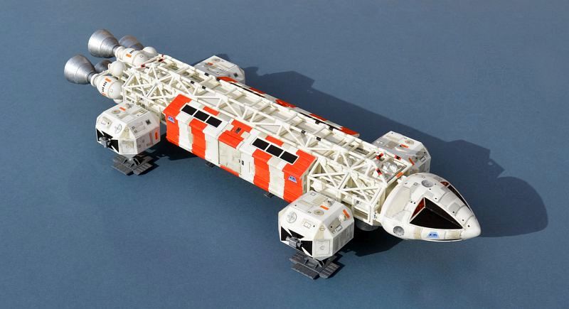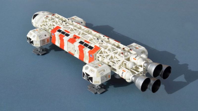 Although many aspects of the Eagle’s design are poorly defined e.g. interior filmed spaces larger than the exterior and propulsion seems to pose a particular problem (where is all the fuel?), the Eagle was at least an attempt to portray a realistic future space “utility” vessel. Its design was so recognisable that it is reputed that George Lucas changed the original design of the Star Wars Millennium Falcon at the last moment, to differentiate it from the Eagle.