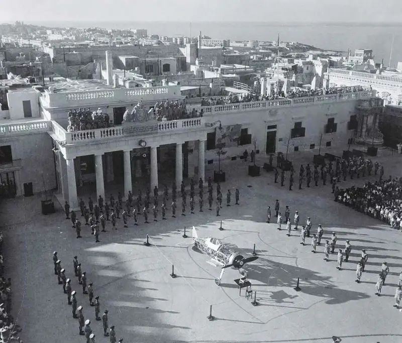 In 1943, Air Vice Marshal Sir Keith Park GCB, KBE,MC and bar, DFC, the AOC Malta, presented the only remaining Malta Sea Gladiator, N5320 “Faith”, to the people of Malta GC at a ceremony held in Valetta. After spending some time in the Governor’s/President’s Palace, she was moved to the National War Museum and partially restored by the RAF.