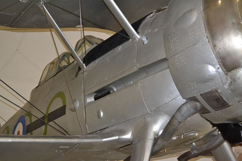 Above: The RAF Museum Hendon once more, showing the Gladiator’s fuselage Vickers Gun installation, firing through the cowl and propeller arc. Two Lewis guns are also fitted under the wings.