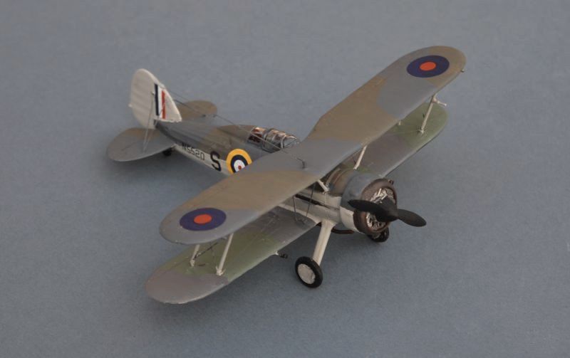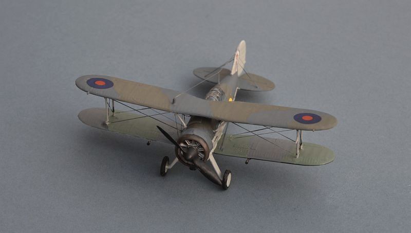 The Gladiator first entered service in 1937 and saw action with the RAF during the early parts of WW2 in almost all war theatres. As it was already badly obsolescent at the start of the war, its successes were limited. Nevertheless, despite its disadvantages, pilots of the RN and RAF flew Gladiators in many of the most bitter battles of the early war, and the successes that they did have are testament to their remarkable courage and skill. The Sea Gladiator was an interim design for the Fleet Air Arm, only differing from the RAF version by fitting an arrestor hook and a dinghy stowage beneath the fuselage.