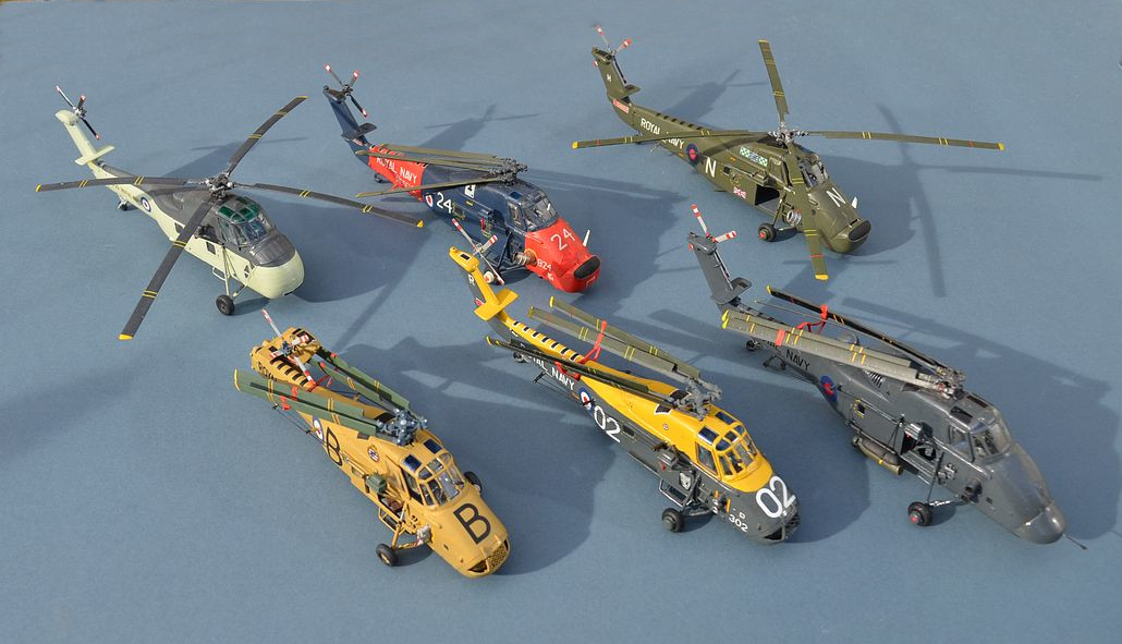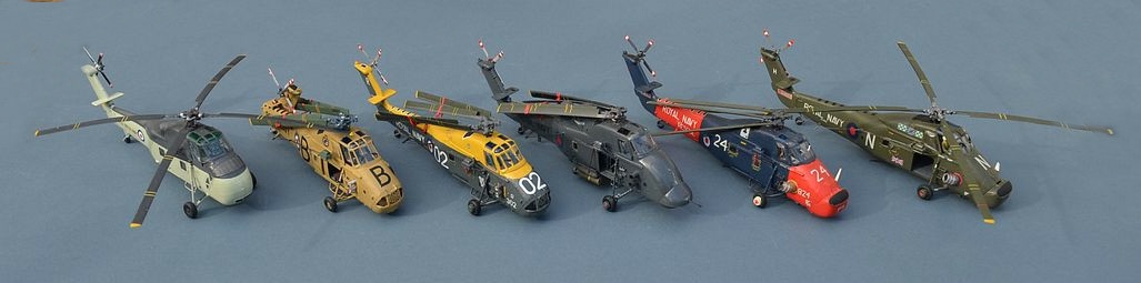 Below: All my Wessex models to date. From Left, S58 Wessex prototype, HAS.1, HAS.1, HAS.3, HAR.5, HU.5.