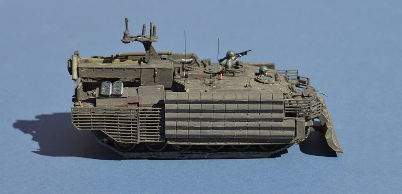 A vital component of the UK's armoured forces, it can tow and recover all current British Army tracked vehicles and is very heavily armoured allowing it to proceed into combat zones to undertake recover under fire. A 50 ton winch and lifting beam is supplemented by a 6.5 tonne Atlas crane capable of lifting a Challenger 2 power pack, it carries a variety of specialist tools including cutting and welding equipment. A large dozer blade enables it to dig itself into cover or remove obstacles.