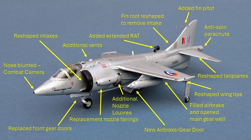 The fairing for the nozzles is more defined, without the blending into the upper surfaces seen on the Harrier. Indeed the whole fuselage area around here is quite different.