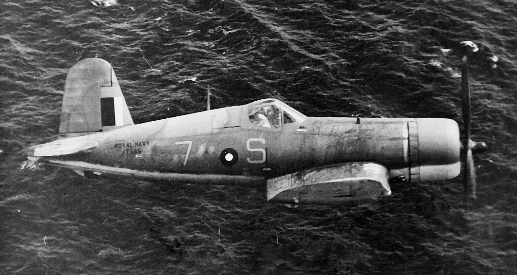 1834 Sqn was formed in June 1943 specifically to be equipped with the Corsair. After training on Corsair 1s in the USA, they moved to Corsair IIs and these were ferried across the Atlantic onboard HMS KHEDIVE. On January 14th 1944, they formed up as part of 47 Fighter Wing at RNAS Stretton in Lancashire, with final training at RNAS Machrihanish before embarking in the Fleet Carrier, HMS VICTORIOUS.