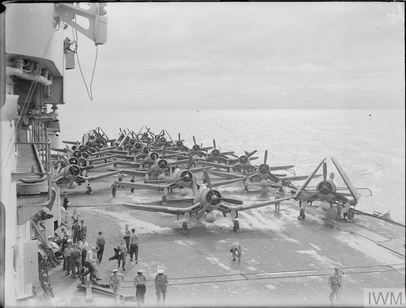 In November 1944, VICTORIOUS and her squadrons formed the core of the new British Pacific Fleet, Task Force 57, under the command of Admiral Spruance USN, CinC 5th Fleet, where they remained until the end of WW2.