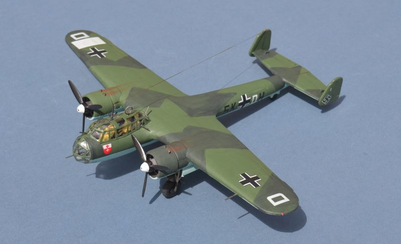 Popularly known as the Fliegender Bleistift ("flying pencil") due to its narrow aft fuselage, it was a contemporary of and had a similar design and capabilities to the Handley Page Hampden', albeit with distinctive shoulder mounted wings . The Do17 Z was the definitive variant, modified and up-powered to reflect lessons learned during the Spanish Civil War.  Fitted with Bramo Fafnir 323 P-2 radial engines, it was limited by its small bomb load of only 1,000kg, maximum speed of 220 mph and limited combat range of 410 miles (for comparison, the He-111 could carry 4,000lbs over 1,000 miles at up to 270 mph and the Ju-88 6,000lbs for up to 1,000 miles at 290 mph).
