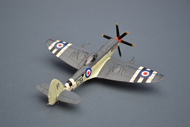 Converted Academy Spitfire XIV with Freightdog Models markings. Engine cowling shortened, hook/wheel guard added, 4 blade prop.
