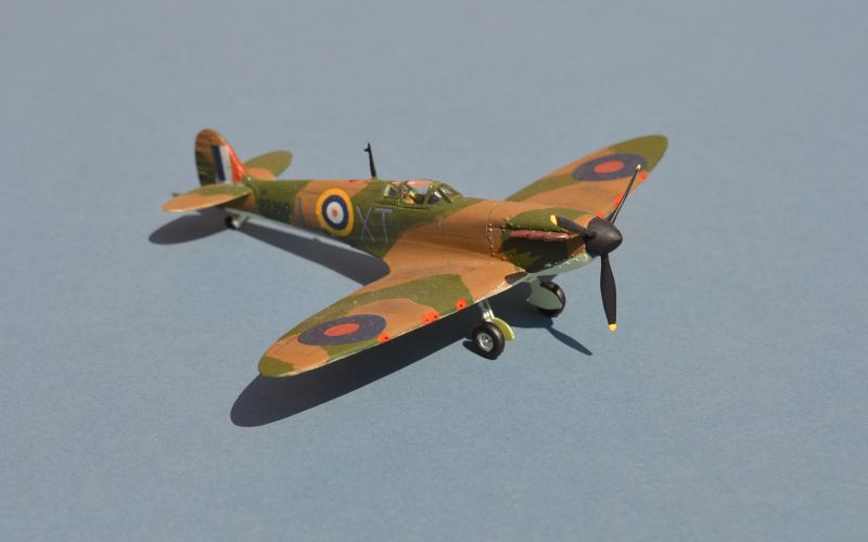 The aircraft depicted by this model was flown by Flying Officer Robert McNair RAF, who claimed one damaged enemy aircraft (a Bf109) on the 18th March 1942.