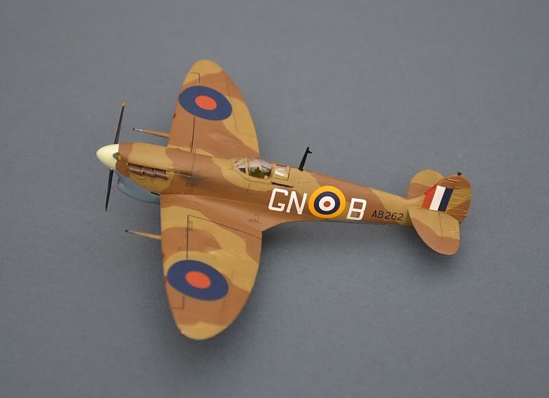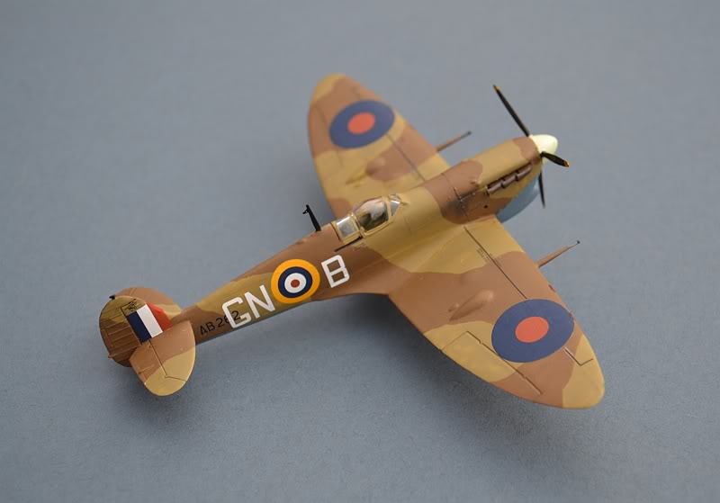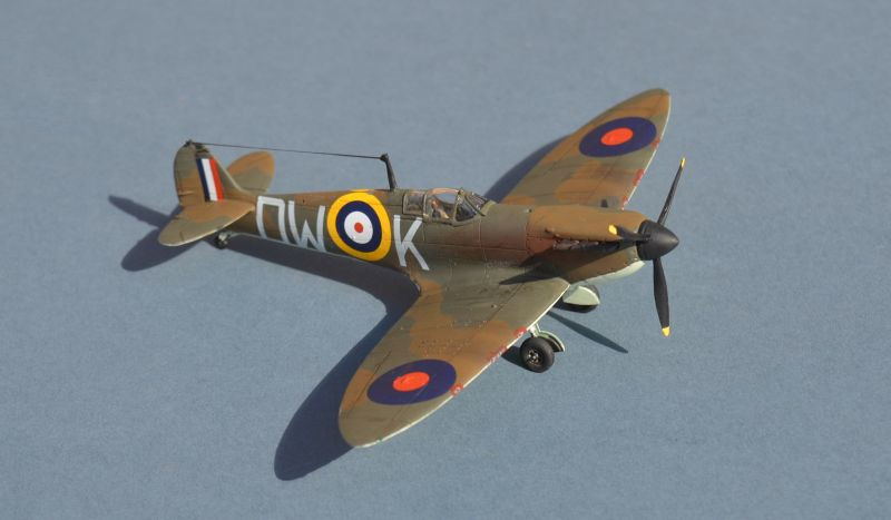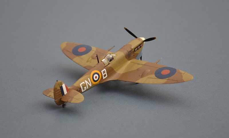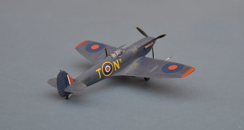 This is the old Airfix Mk Vb Spitfire kit, which can definitely still hold its own with more modern kits. I have made some very small modifications; the distinctive Volkes tropical air filter under the nose, using the parts from an Airfix Mk Vc kit, a shorter blunter propeller boss and a seat harness. Link to build page