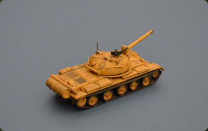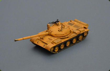 The T-62 was an up-gunned development of the T-55, entering service in 1961 as a counter to advanced western tanks such as the Centurion. Difficult and expensive to build, it fell from favour when new ammunition for the T-55 regained its effectiveness. Production ended in 1975, but it remains in widespread service around the world. Iraq acquired a total of 2,850 T-62s, with the final 500 used (and largely destroyed) during the second Gulf War. This is an Italeri 1/72 kit, representing a vehicle of the Iraqi Regular Army on the Al-Faw peninsula in 2003. Return to Dark Side AFVs index page Return to Gengriz Modelling Index Page